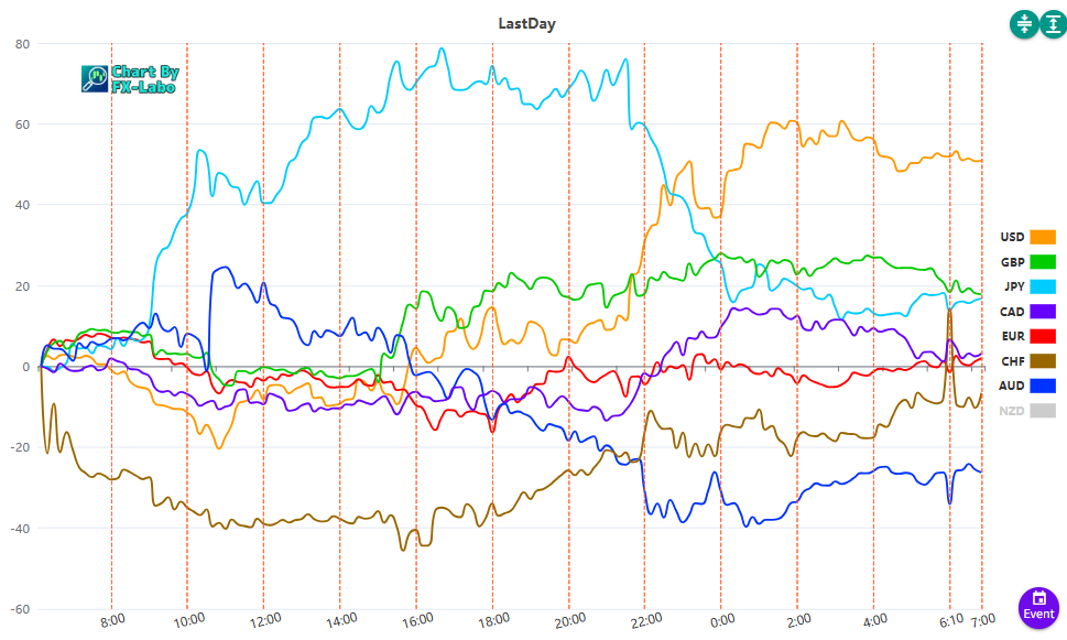 上は昨日の通貨強弱。