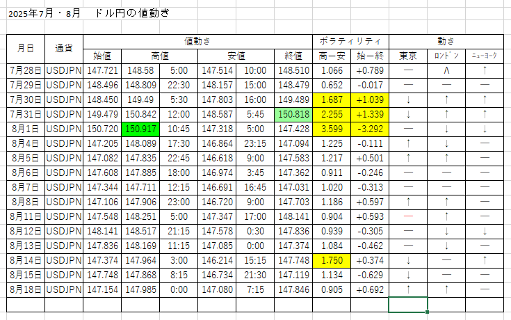 週明けは、ロシアウクライナ停戦協議の進行が気になるものの、市場は大きな波乱はありませんでした。展開によっては大きな動きになるか可能性があるので警戒が必要です。市場の注目は、21日からのジャクソンホール会合でのパウウェル議長の講演で利下げを示唆するかが注目となっています。