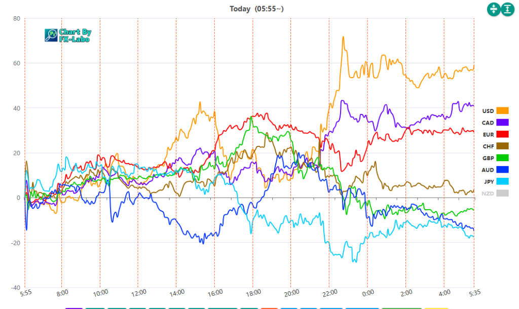 上図は9/18の通貨強弱。FOMCを終えてドル高、円安となっています。