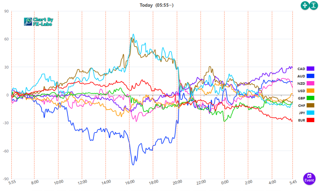 上は、17日の通貨強弱。値動きが出ていますが、変化も大きく難しい相場ですね。