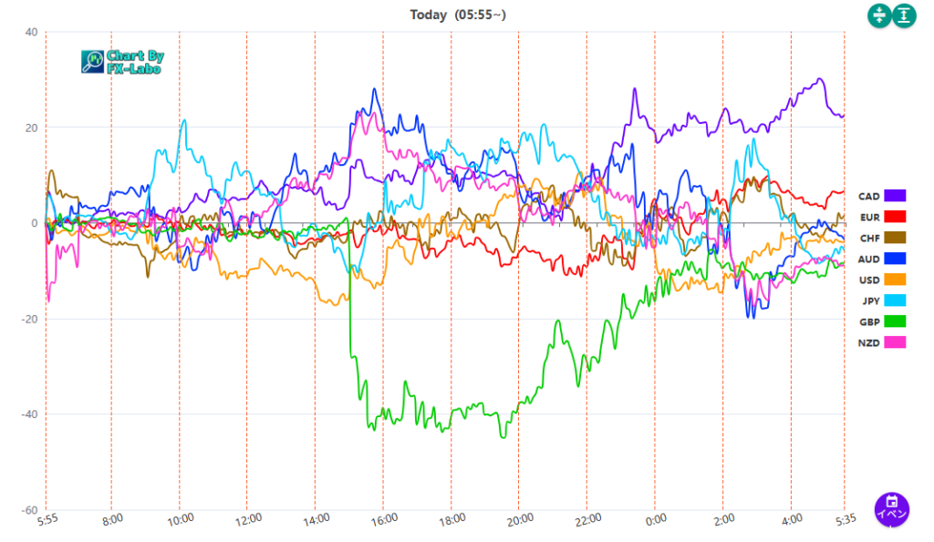 上は、21日の通貨強弱。円は売りと買戻しで全体として円安でした。