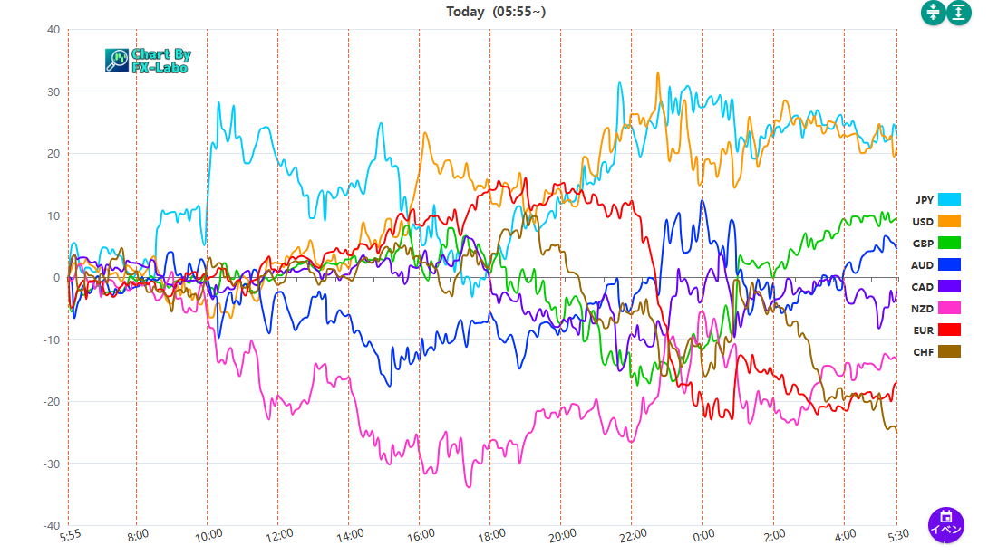 上は、31日の通貨強弱。入り乱れています。難しい相場です。