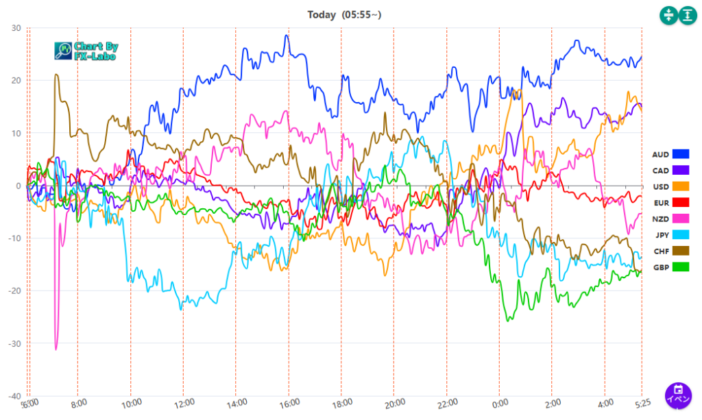 上は、30日の通貨強弱。全体に小動き
