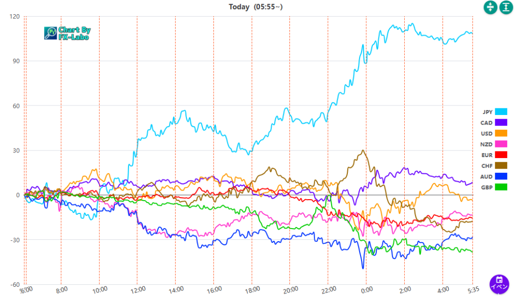 上は、10日の通貨強弱。円が買い、ポンドと豪ドルが売りとなりました。