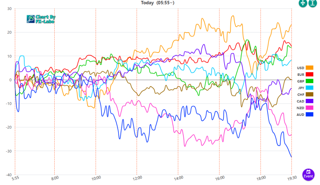 上は、25日の東京時間の通貨強弱。今日は小動き。