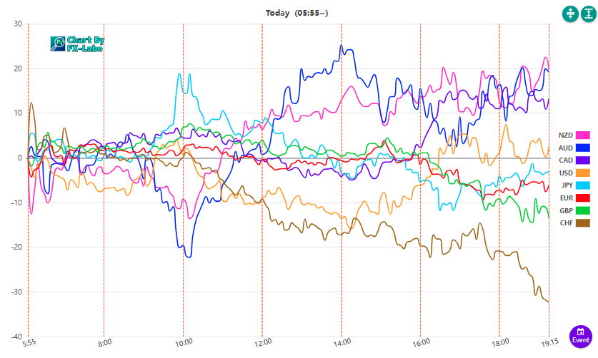 上は、26日の東京時間の通貨強弱。今日は小動き。