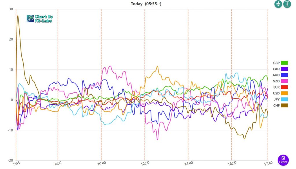 上は、24日の東京時間の通貨強弱。本日ここまでは小動き。